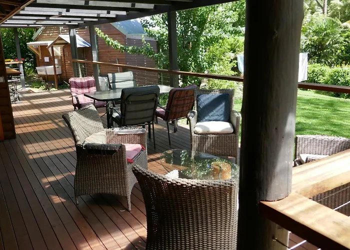 Deze 2-slaapkamer Falls Lodge - A Blue Mountains Experience Wentworth Falls ligt op 3 km afstand van de Wentworth Watervallen en beschikt over een eettafel op een terras voor een aangenaam verblijf.